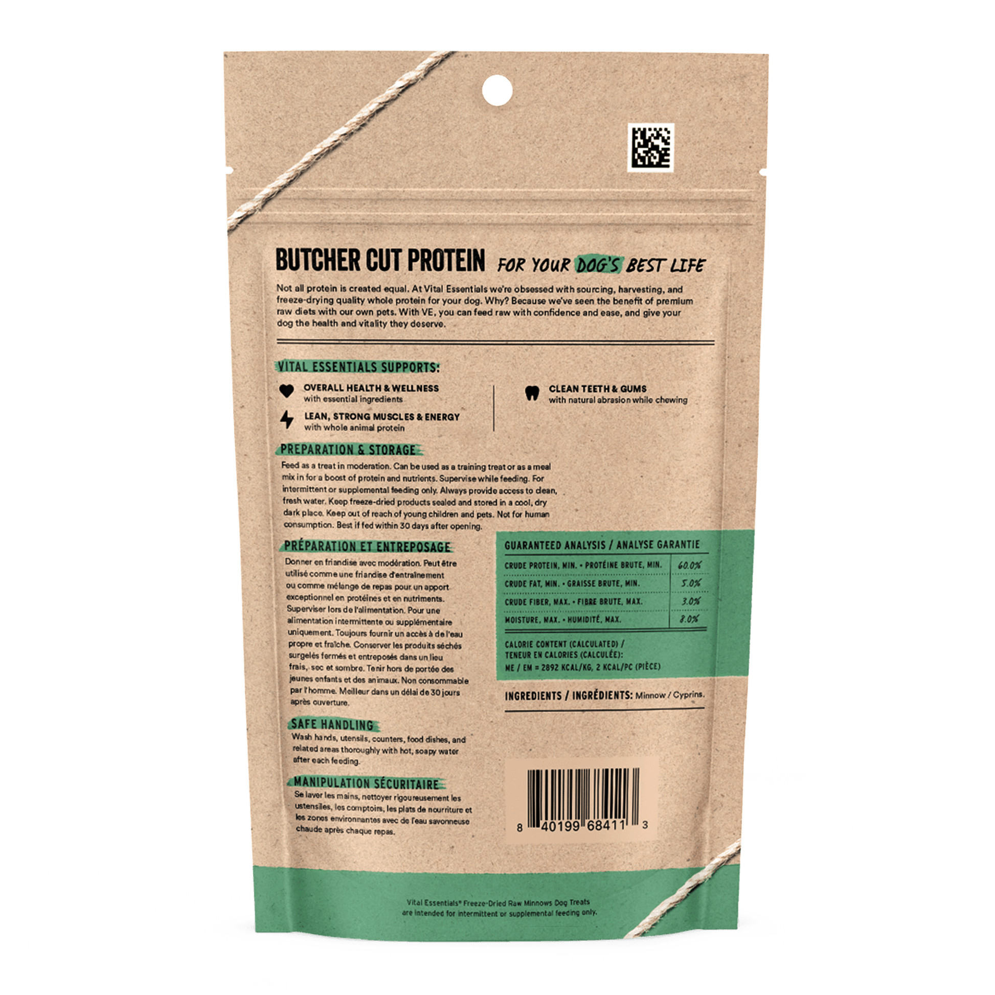 Packed with whole animal butcher cut protein, these high-value freeze-dried treats are full of naturally occurring vitamins and minerals, because your pet deserves the best. Our butcher cut raw protein is the perfect guilt-free treat that also builds strong muscles for more play, naturally supports digestive and oral health, and provides essential nutrients to support your dogs vitality.
