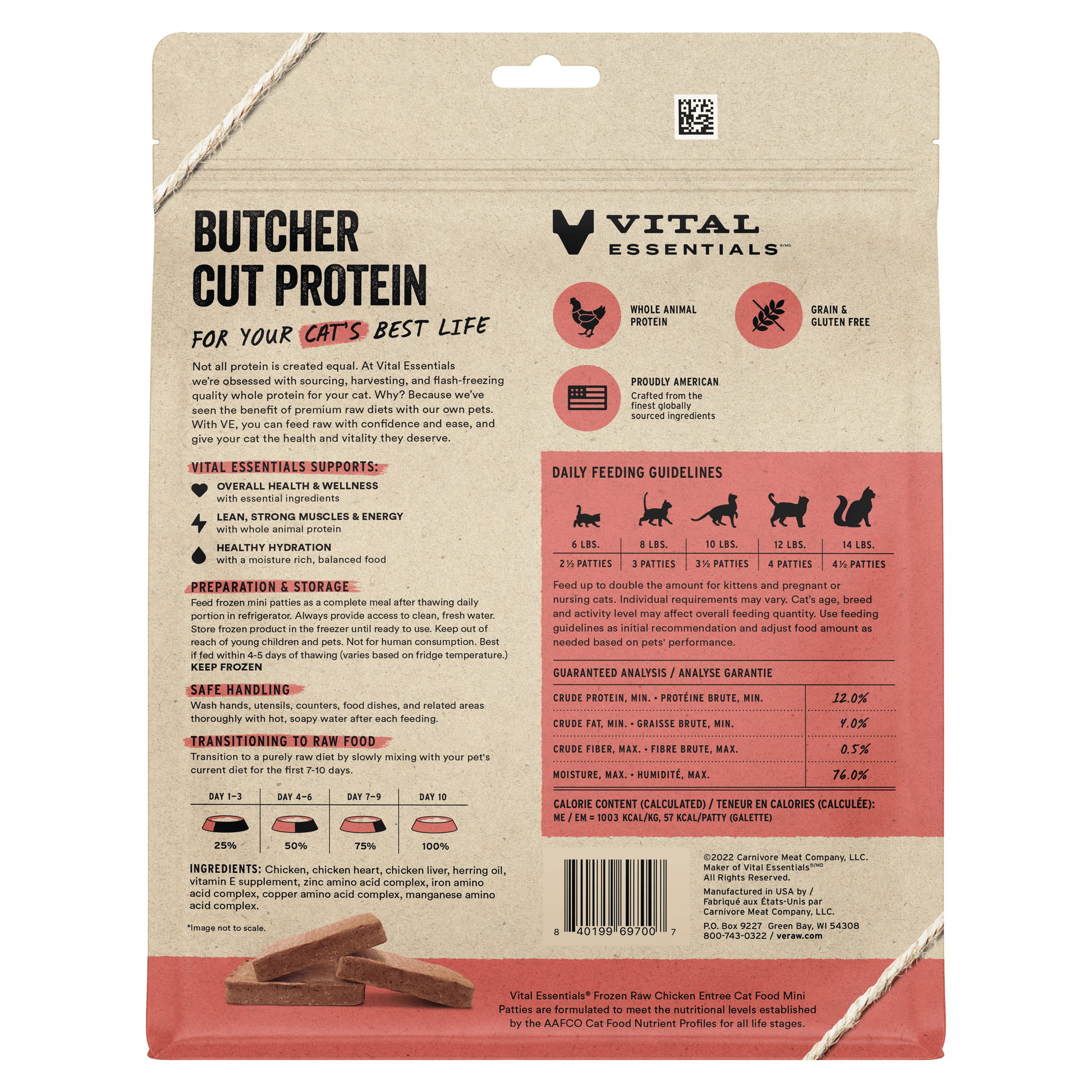 When it comes to feeding your cat a raw diet, superior protein provides superior benefits. Packed with butcher cut protein, our limited ingredient frozen mini patties are the perfect solution to serving your cat a raw diet containing the naturally occurring vitamins and minerals that build strong muscles for more play, naturally support digestive and oral health, and provide essential nutrients to look and feel their best. Simply thaw and serve no mixing or cooking required.