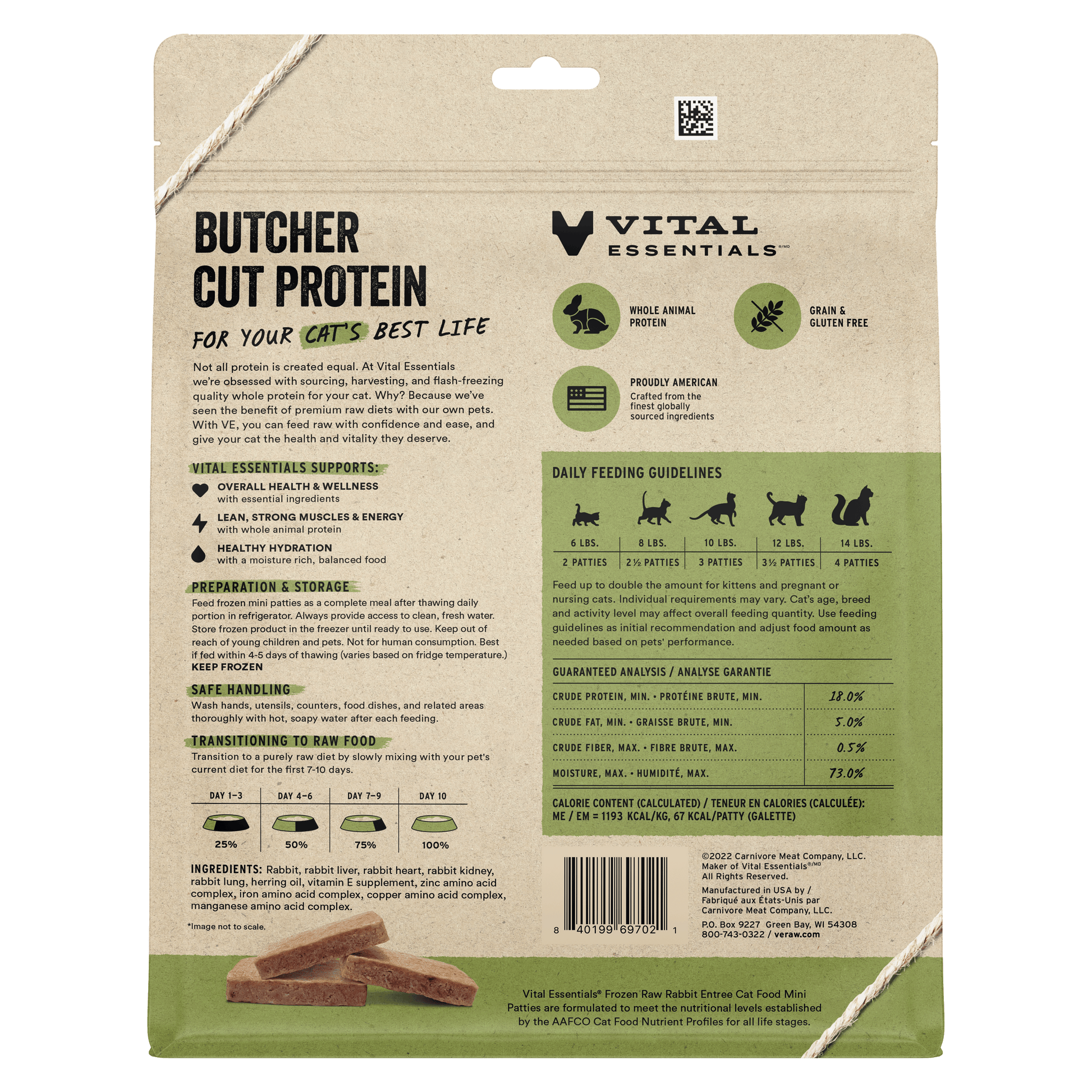 When it comes to feeding your cat a raw diet, superior protein provides superior benefits. Packed with butcher cut protein, our limited ingredient frozen mini patties are the perfect solution to serving your cat a raw diet containing the naturally occurring vitamins and minerals that build strong muscles for more play, naturally support digestive and oral health, and provide essential nutrients to look and feel their best. Simply thaw and serve no mixing or cooking required.
