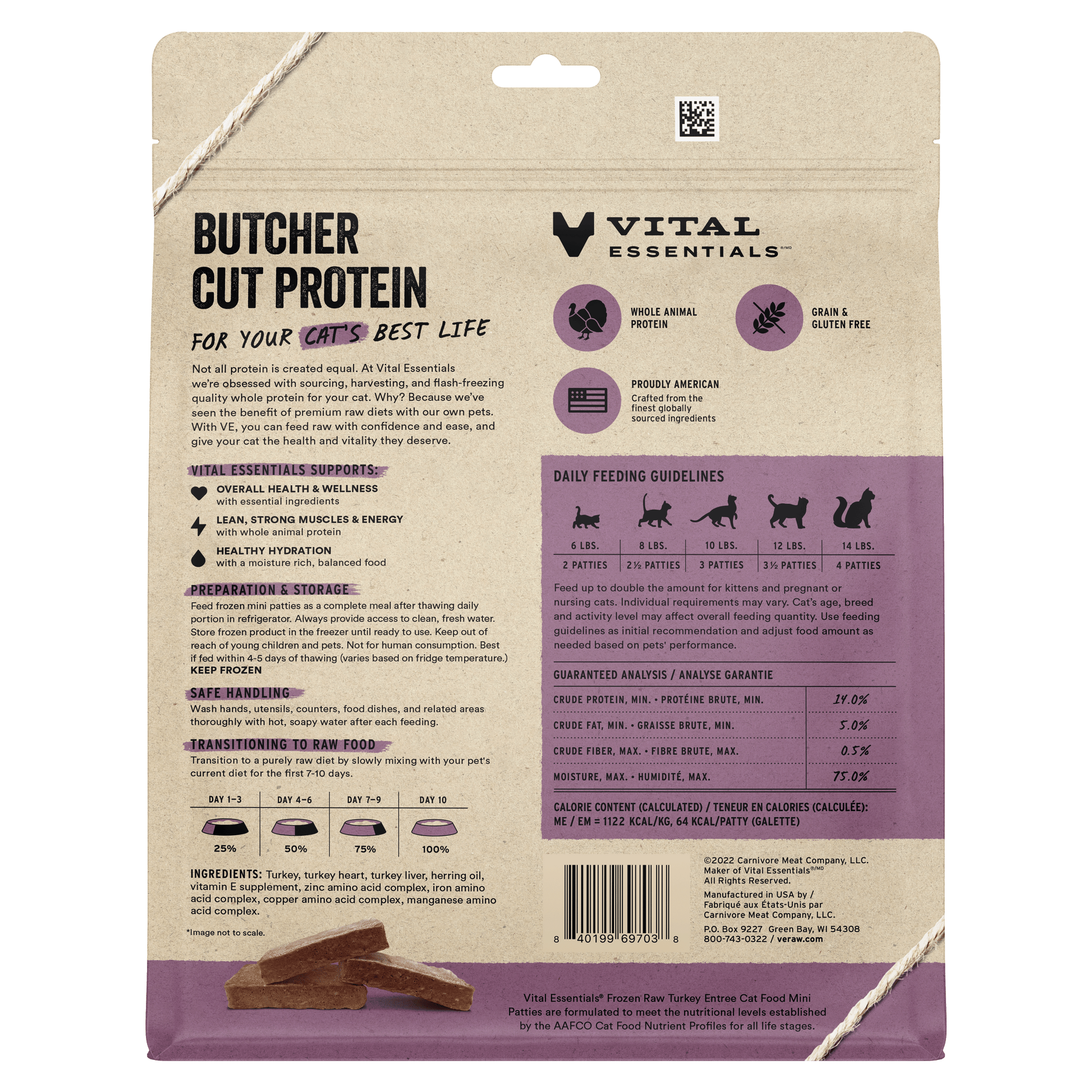 Frozen Turkey Mini Patties Cat Food